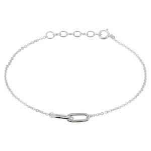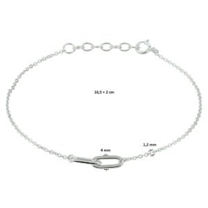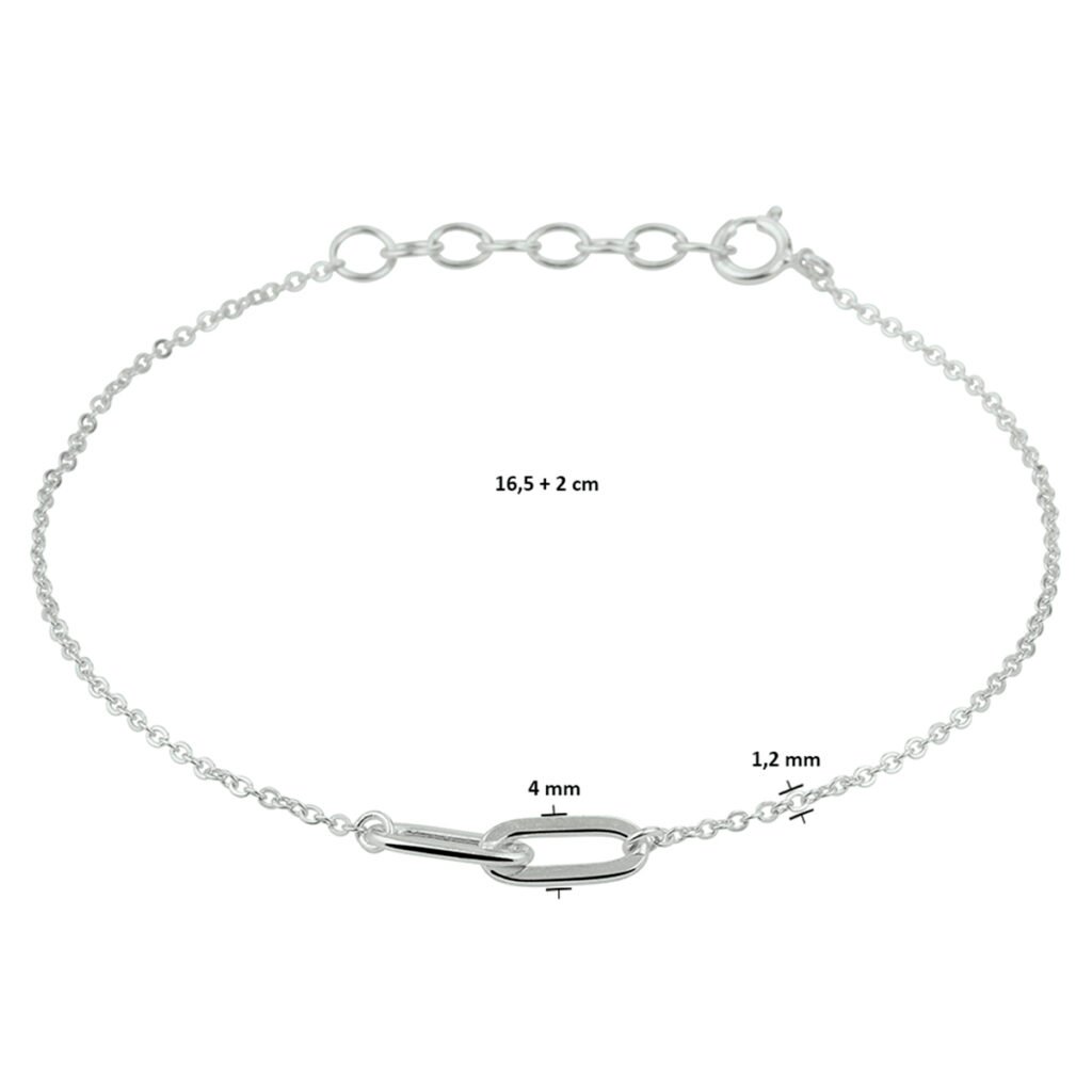 Gerhodineerd 925 zilveren damesarmband uitgevoerd met twee schakels. De damesarmband heeft een draaglengte van 16.5cm met een extensie van 2cm. De schakels hebben een breedte van 1.2 en 4mm.