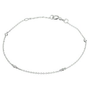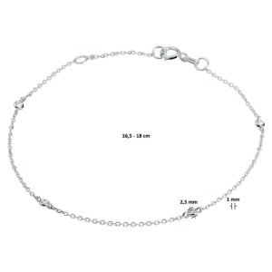 Deze dames armband met diamanten is gemaakt van 14 karaats witgoud, de allerbeste kwaliteit witgoud, met een fijntjes gepolijst oppervlak dat mooi glanst. Deze armband bestaat uit meerdere slanke anker schakels die fijntjes op elkaar aansluiten en die samen een stijlvol geheel vormen, met meerdere ronde plaatjes die voorzien zijn van kleurloze 0,02crt diamanten die mooi glinsteren. Aan de achterkant zit een handige karabijnsluiting, waardoor u deze armband gemakkelijk om- en afdoet. De armband is tevens voorzien van een verlengstukje, waardoor de armband in lengte versteld kan worden van 16,5cm naar 18cm.