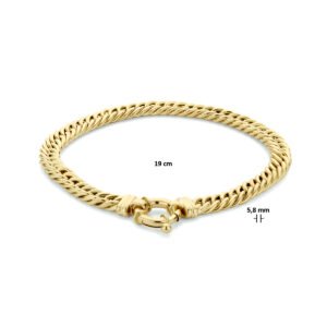 14k Geelgouden gourmet armband met een schakelbreedte van 5.8mm. De armband heeft een draaglengte van 19cm en is uitgevoerd met een groot slot.