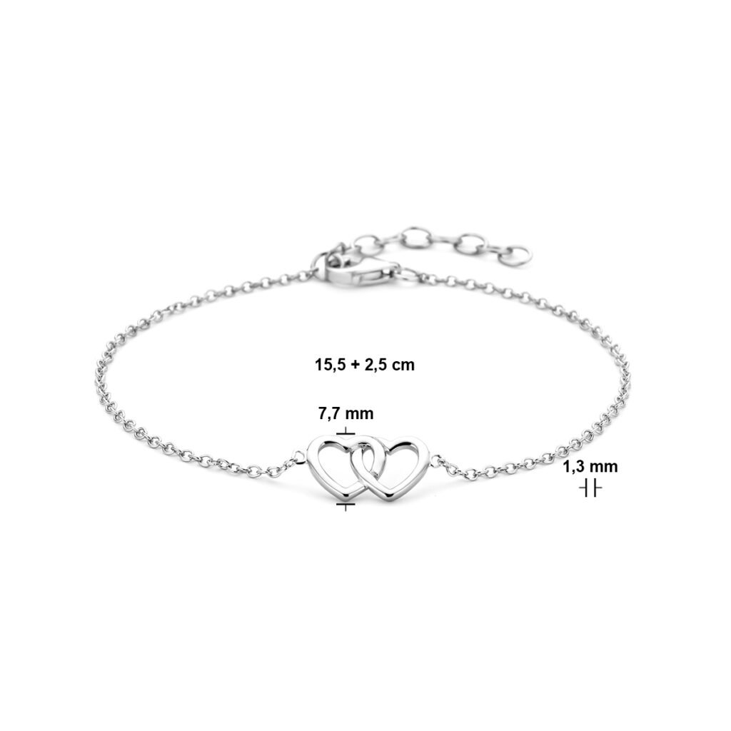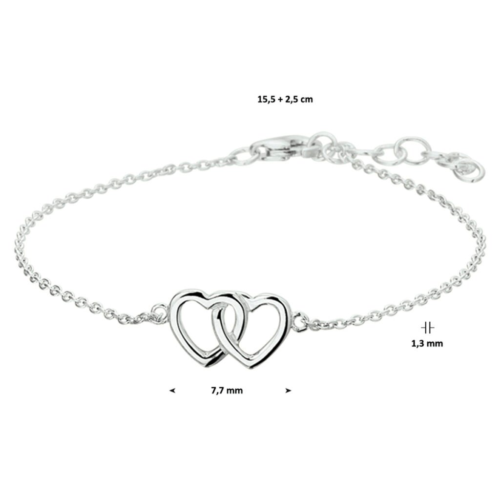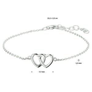 Deze Dubbel Hart Fantasie Armband voor Dames is volledig gemaakt van 925 sterling zilver, de allerbeste kwaliteit zilver, en bestaat uit een slanke schakelketting met in het midden aan de voorkant twee opengewerkte hartvormen die in elkaar haken. Deze armband is tevens bedekt met een laagje rhodium, waardoor de glans extra lang behouden blijft, en voorzien van een handige karabijnsluiting, waarmee u deze armband gemakkelijk om- en afdoet. Deze Dubbel Hart Fantasie Armband voor Dames heeft een lengte van 18cm. Deze armband behoort tevens tot onze huiscollectie, waardoor u verzekerd bent van de allerbeste kwaliteit tegen de scherpste prijzen!