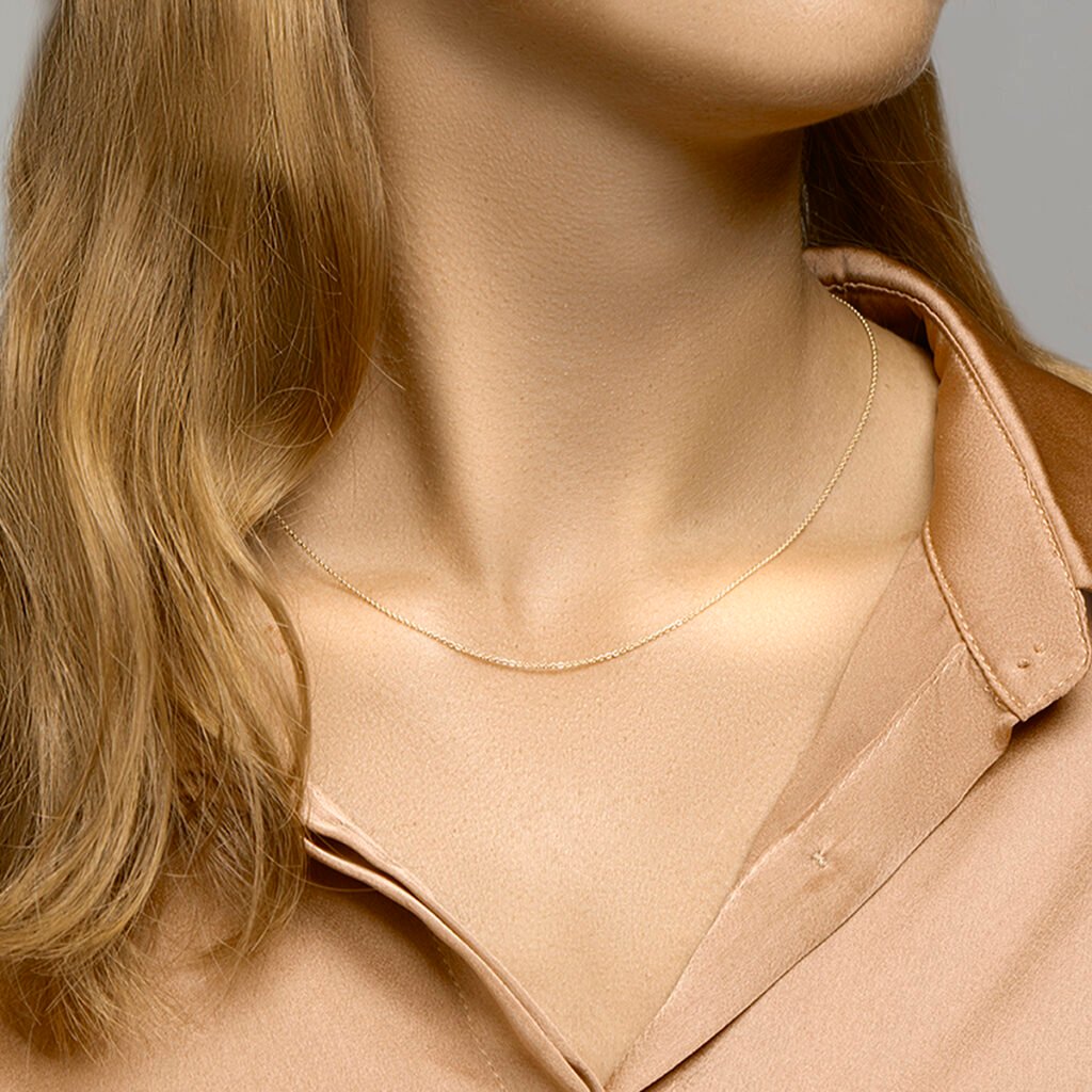 Geelgoud op 925 zilveren anker plat collier met een schakelbreedte van 1.1mm.