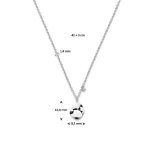 Gerhodineerd 925 zilveren collier uitgevoerd met een ovaalvormige hanger, diamant en een karabijn sluiting. Het collier heeft een draaglengte 42cm en een extensie van 3cm. De schakelbreedte is 1.4mm.