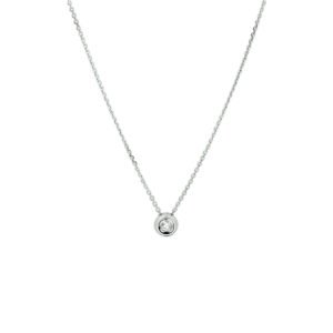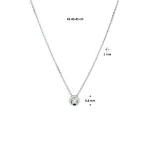 Stijlvol 14k witgouden 1mm anker collier met draaglengtes van 41, 43 en 45cm. Het collier heeft een ronde zetkast met een diameter van 5.5mm. Uitgevoerd met een luxe briljant geslepen diamant van 0.05ct en een stevige karabijn sluiting. Het collier is te combineren met bijpassende sieraden uit onze collectie.