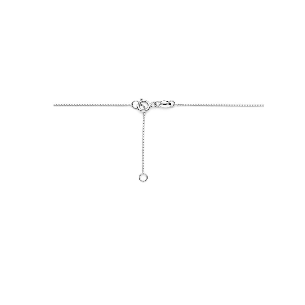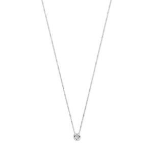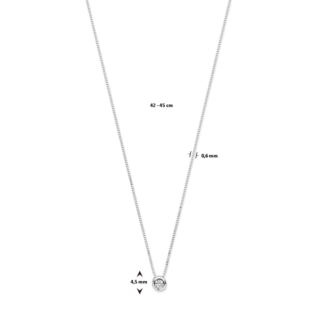 14k Witgouden collier uitgevoerd met diamant. Het collier heeft draaglengtes van 42 en 45 cm. De schakelbreedte is 0.6mm.
