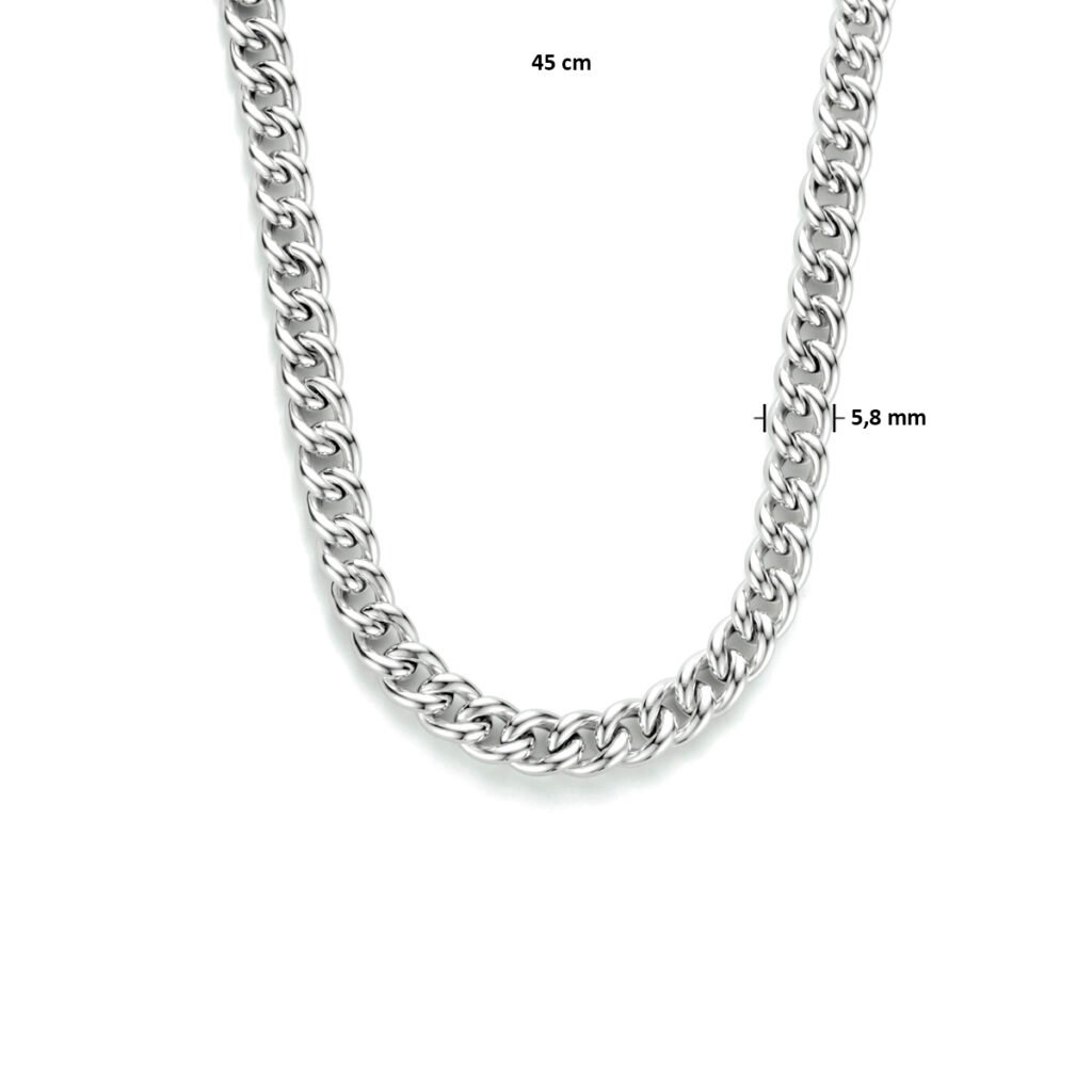 Gerhodineerd 925 zilveren gourmet collier met een schakelbreedte van 5.8mm. Het collier heeft een draaglengte van 45cm.