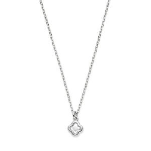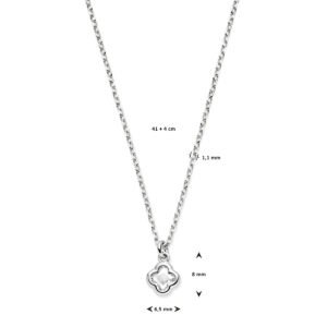 Gerhodineerd 925 zilveren collier uitgevoerd met klavertje en zirkonia. Het collier heeft een draaglengte van 41cm met 4cm extensie. Uitgevoerd met karabijn sluiting. De schakelbreedte is 1.1mm.