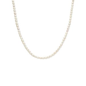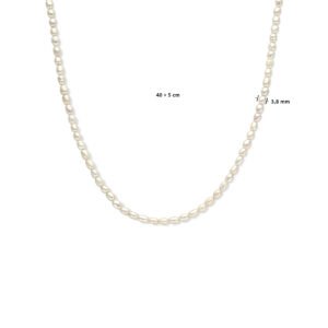 Gerhodineerd 925 zilveren collier uitgevoerd met zoetwaterparels. Het collier heeft een draaglengte van 40cm met 5cm extensie.