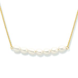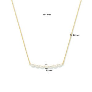 Geelgoud op 925 zilveren collier uitgevoerd met zoetwaterparels. Het collier heeft een draaglengte van 42cm met een extensie van 3cm en een stevige karabijn sluiting. De schakelbreedte is 1.0mm. Geen garantie op plating.