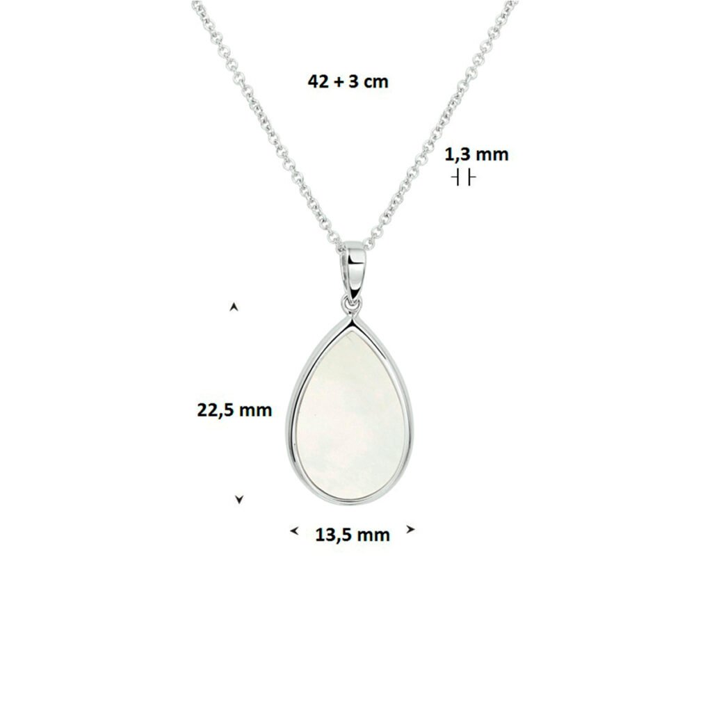 Gerhodineerd zilveren 1.3mm anker collier met een lengte van 42cm en een extensie van 3cm uitgevoerd met parelmoer in een zetkast van 22.5×13.5mm en stevig hangoog. Het collier is te combineren met bijpassende sieraden uit onze collectie.