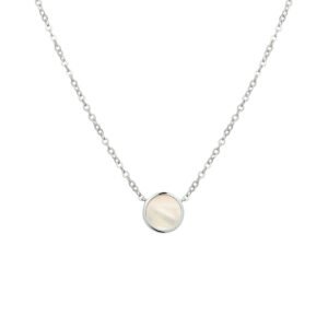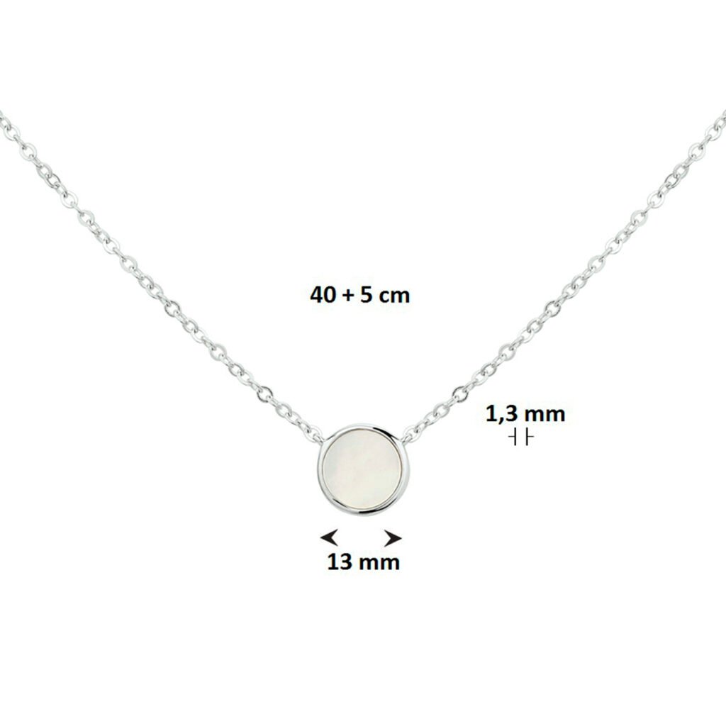 Trendy gerhodineerd 925 zilveren 1.7mm brede anker collier met een lengte van 42cm plus een extensie van 3cm uitgevoerd met parelmoer in een zetkast van 9.5mm. Het collier is te combineren met bijpassende sieraden uit onze collectie.