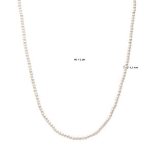 Gerhodineerd 925 zilveren collier uitgevoerd met zoetwaterparels. Het collier heeft een draaglengte van 40cm met 5cm extensie. Uitgevoerd met karabijnsluiting.