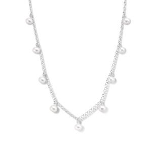 Gerhodineerd 925 zilveren collier uitgevoerd met zoetwaterparels en een karabijn sluiting. Het collier heeft een draaglengte van 41cm met 4cm extensie. De schakelbreedte is 2.7mm.