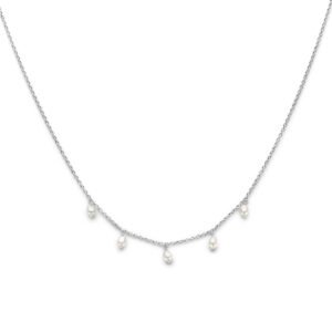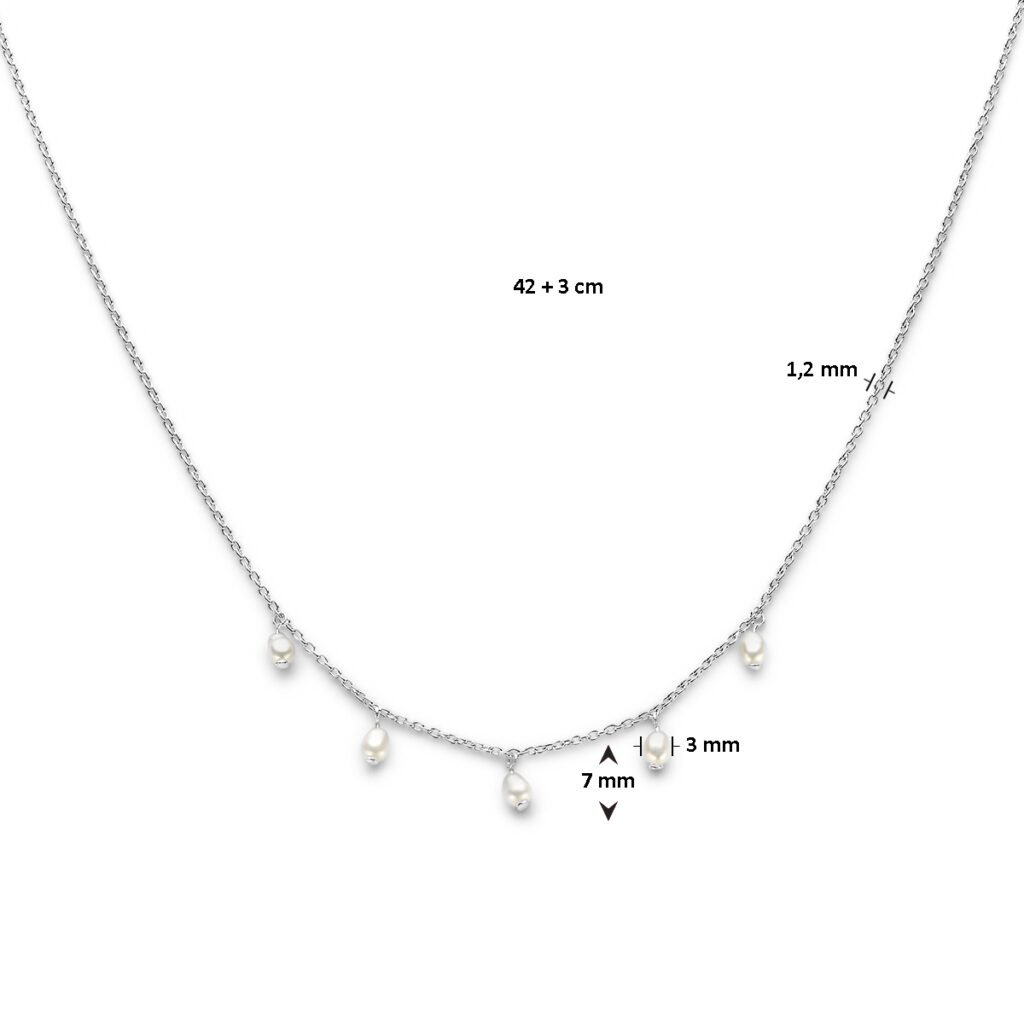 Gerhodineerd 925 zilveren collier uitgevoerd met zoetwaterparels. Het collier heeft een draaglengte van 42cm en een extensie van 3cm. De schakelbreedte is 1.2mm.