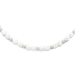 Gerhodineerd 925 collier uitgevoerd met schitterende zoetwaterparels. Het collier heeft een draaglengte van 41cm met 5cm extensie.