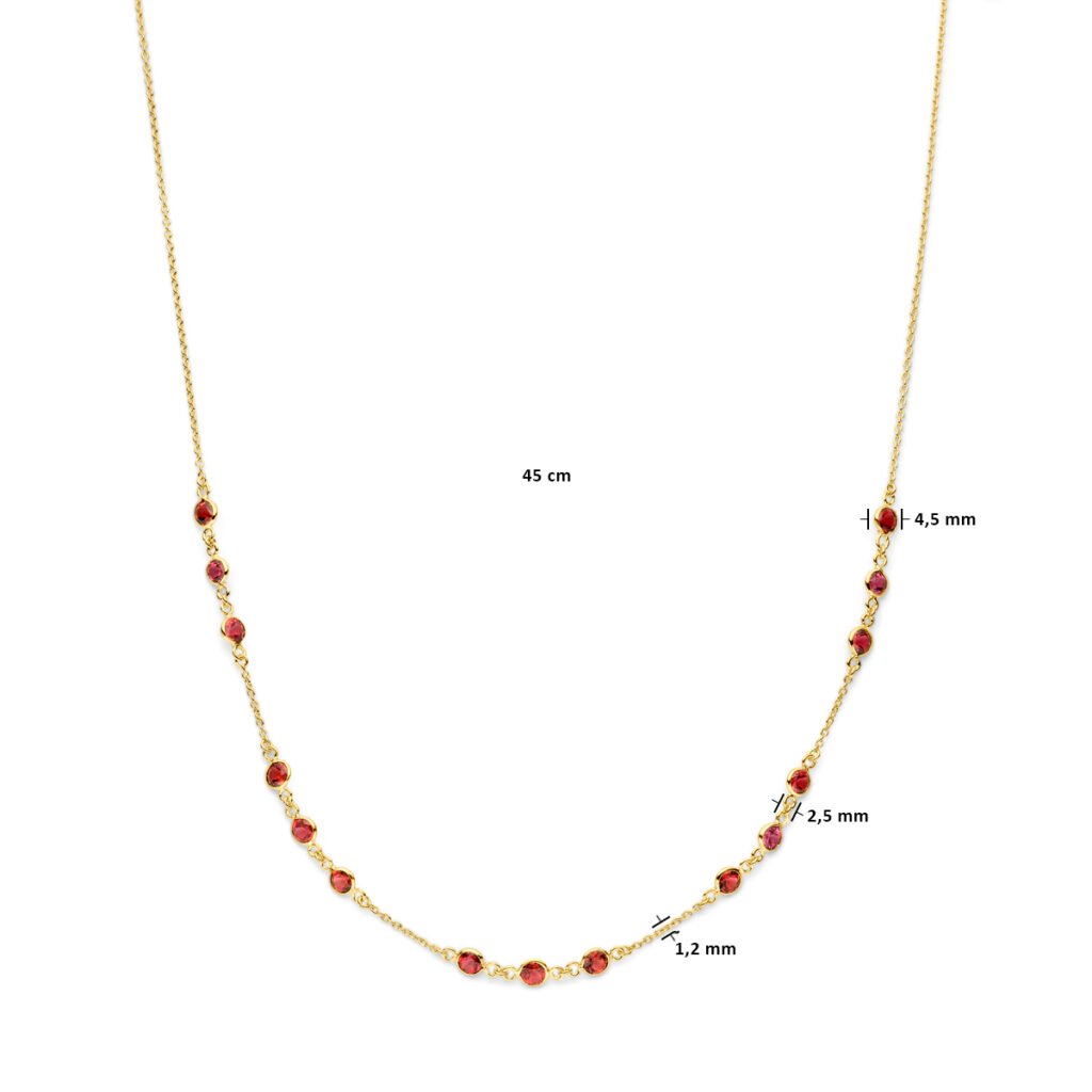 Geelgoud op 925 zilveren collier uitgevoerd met rhodoliet kwarts. Het collier heeft een schakelbreedte van 1.2mm en een draaglengte van 45cm. Geen garantie op de plating.