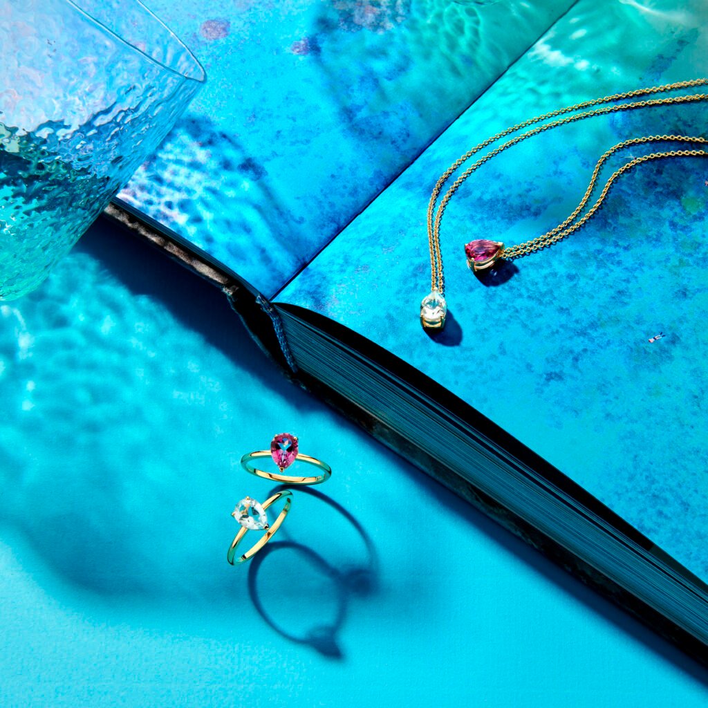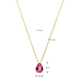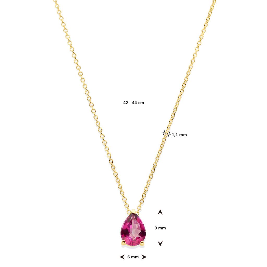 14k Geelgouden collier uitgevoerd met roze topaas en een karabijn sluiting. Het collier heeft draaglengte van 42 en 44cm. De schakelbreedte is 1.1mm.