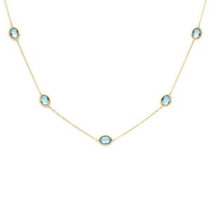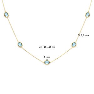 14k Geelgouden collier. Het collier heeft draaglengtes van 41, 43 en 45cm. De topaas heeft een afmeting van 7x5mm. Uitgevoerd met een karabijn sluiting.
