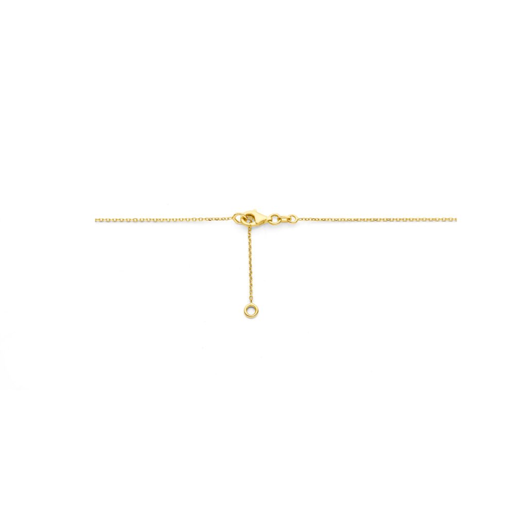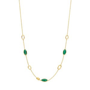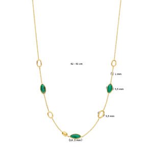 14k Geelgouden collier uitgevoerd met smaragd. Het collier heeft een schakelbreedte van 1mm en draaglengtes van 42-45cm. Uitgevoerd met karabijnsluiting.