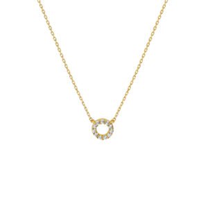 Geelgouden collier met zirkonia. De lengte bedraagt 40cm met 4cm extensie en de schakelbreedte is 0.8mm.