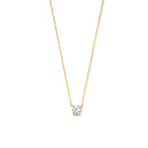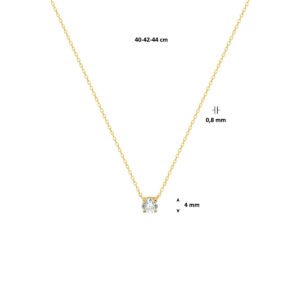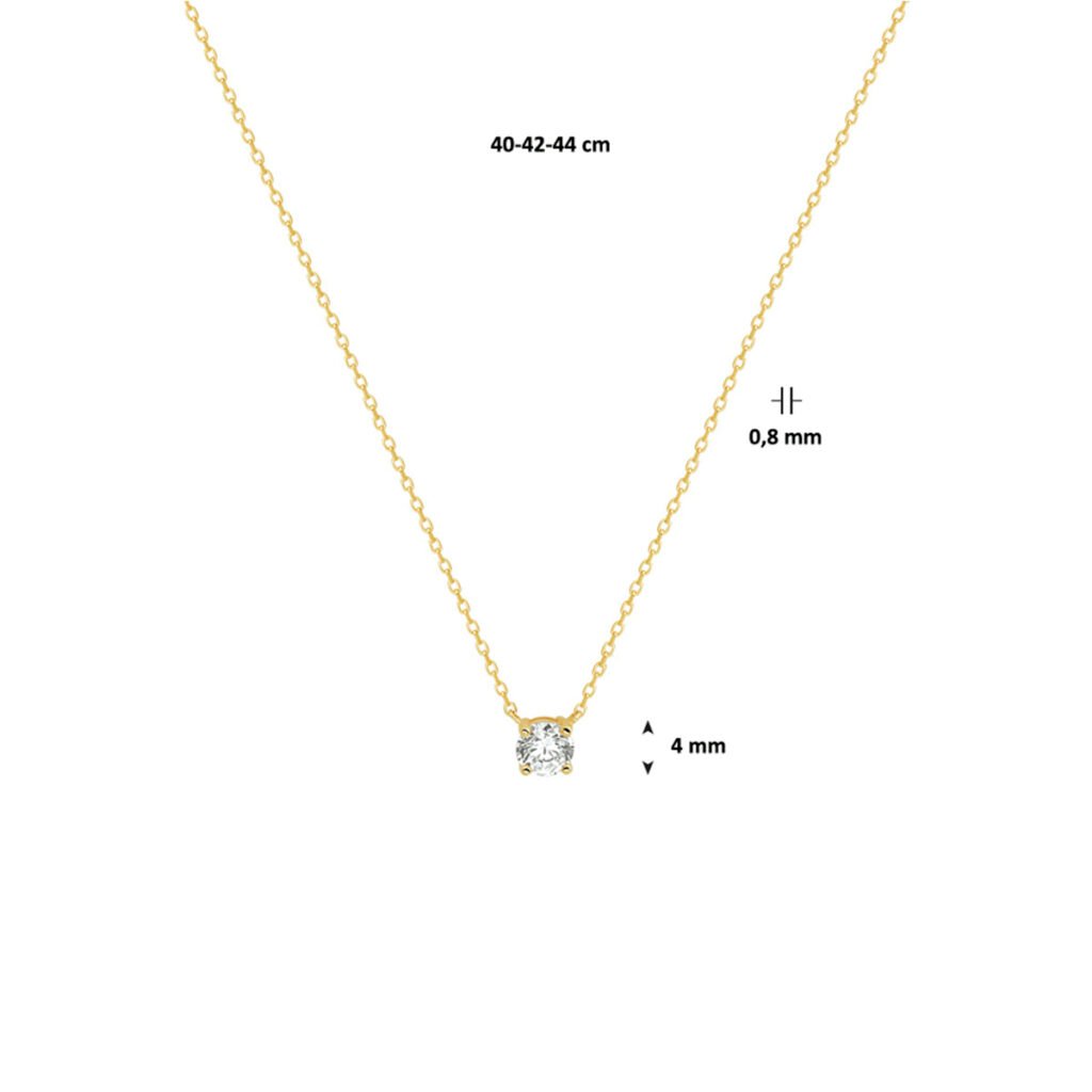 14k Geelgouden collier met zirkonia van 42cm lang. De schakelbreedte bedraagt 0.8mm. De zirkonia steen heeft een diameter van 4mm.