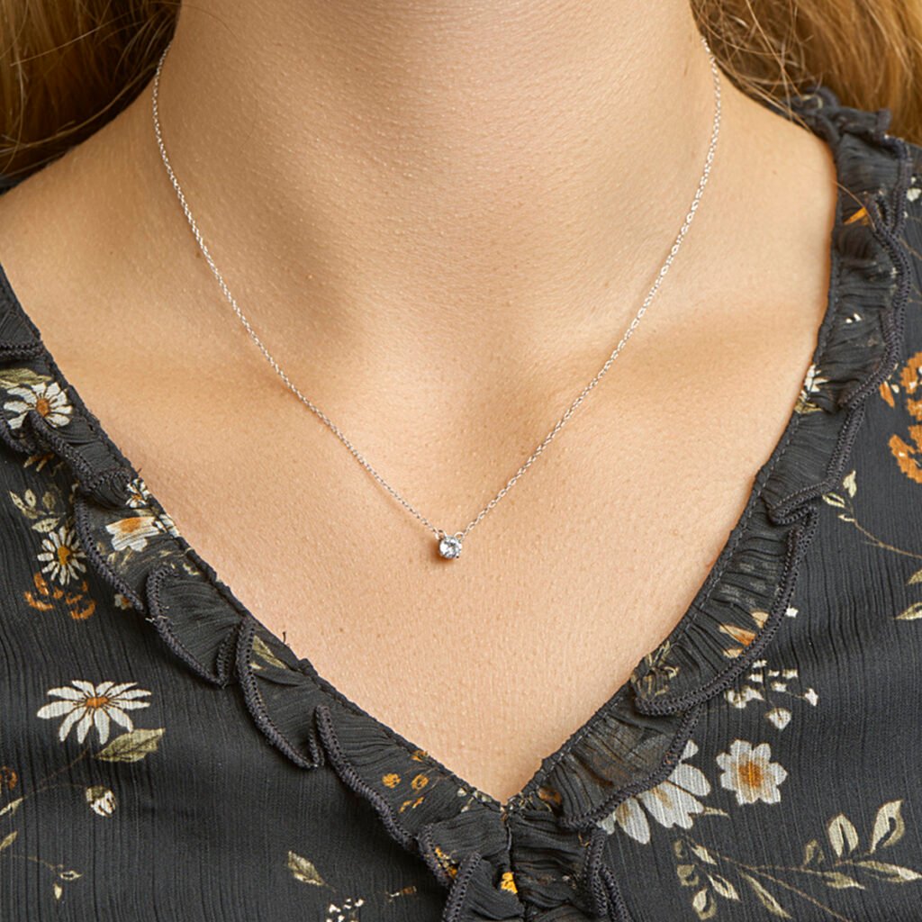 Gerhodineerd zilveren collier met zirkonia en een poli afwerking. De lengte bedraagt 41cm met 4cm extensie en de schakelbreedte bedraagt 1.2mm.