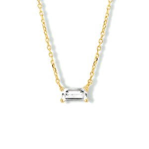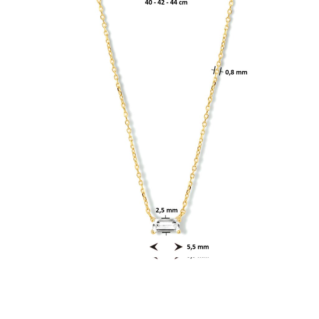 14k Geelgouden collier uitgevoerd met een schitterende zirkonia. Het collier heeft draaglengtes van 40, 42 en 44cm. De schakelbreedte is 0.8mm.
