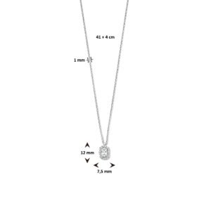 Gerhodineerd 925 zilveren collier uitgevoerd met schitterende zirkonia. Het collier heeft een draaglengte van 41cm en een extensie van 4cm. De schakelbreedte is 1.0mm.