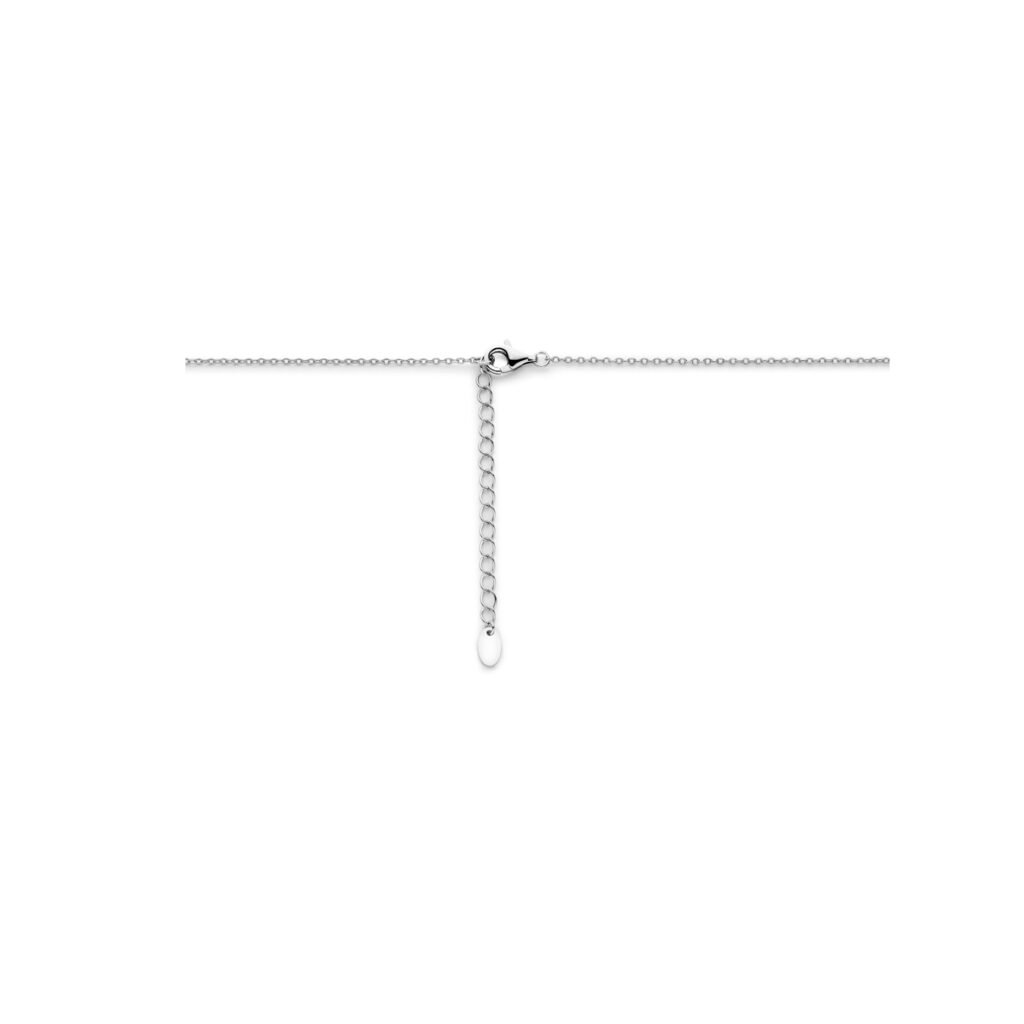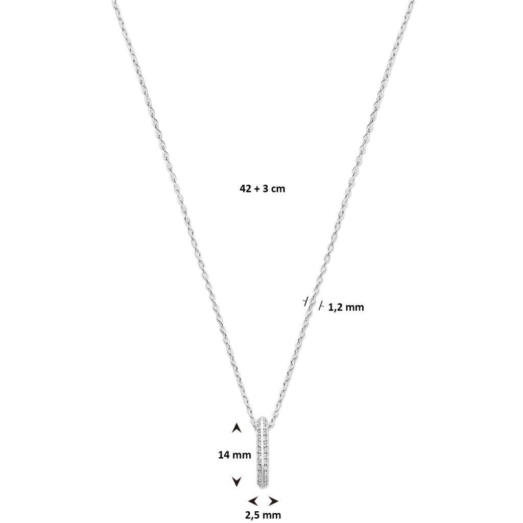 Gerhodineerd 925 zilveren collier uitgevoerd met zirkonia. Het collier heeft een draaglengte van 42cm en een extensie van 3cm. De schakelbreedte is 1.2mm. Uitgevoerd met een karabijn sluiting.