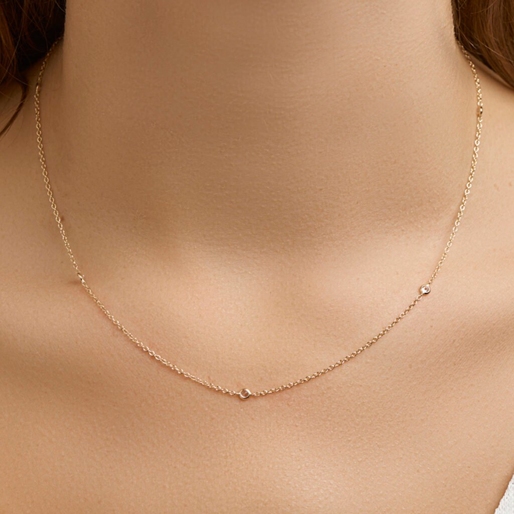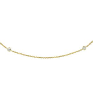 Geelgouden collier met anker schakel en zirkonia. Het collier is onderdeel van een set. De lengte van het collier bedraagt 42cm met 3cm extensie. De schakelbreedte is 3.2mm.