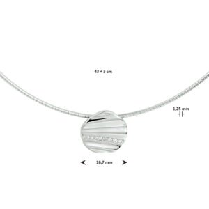 Gerhodineerd 925 zilveren collier uitgevoerd met een hanger in de vorm van een rondje met daarin een schitterende zirkonia rij. Het collier heeft een draaglengte van 43cm met een extensie van 3cm en een stevige karabijn sluiting. Het rondje heeft een diameter van 16.7mm. De schakelbreedte is 1.25mm.