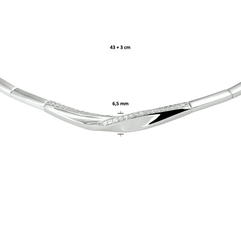 Gerhodineerd zilveren collier met een draaglengte van 43cm en een extensie van 3cm. De schakelbreedte is 6.5mm. Met schitterende details zoals de sprankelende rij van zirkonia stenen en de poli afwerking. Uitgevoerd met een stevig karabijn slot. Tip: Combineer dit collier met bijpassende sieraden uit onze collectie.