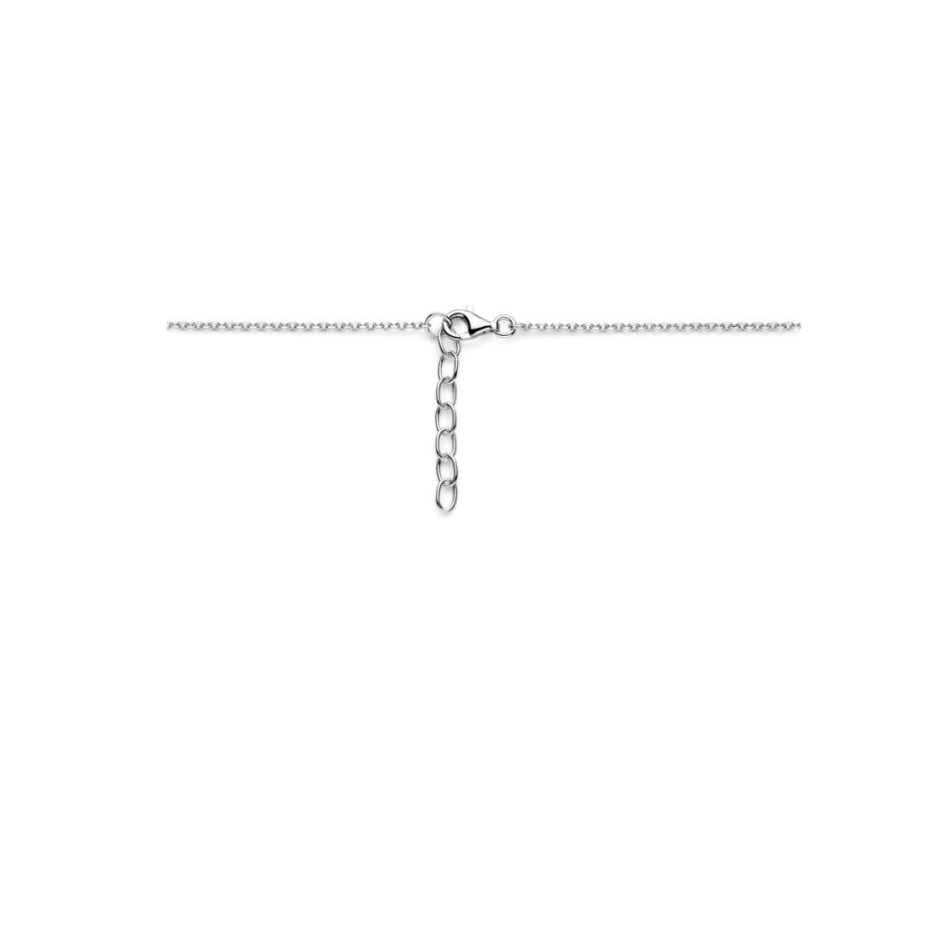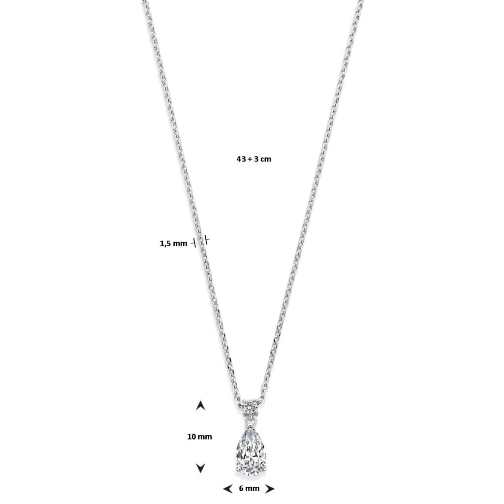 Gerhodineerd 925 zilveren collier uitgevoerd met zirkonia. Het collier heeft een draaglengte van 43cm met 3cm extensie. Uitgevoerd met karabijnsluiting.