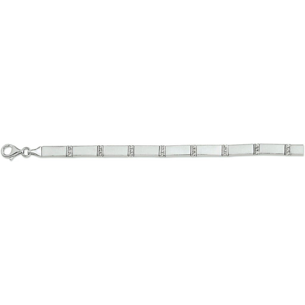 Gerhodineerd zilveren armband met zirkonia en een poli/matte afwerking. Het collier is onderdeel van een set. De schakelbreedte is 5.2mm.