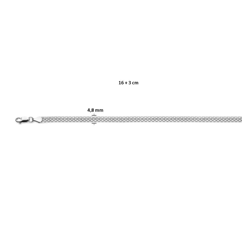 Gerhodineerd 925 zilveren lengteartikelen met dubbel gourmette schakel van 4.8mm. Uitgevoerd met een karabijnsluiting.