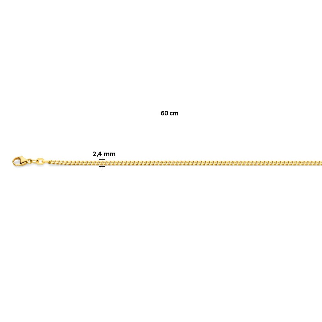 Gourmette 4-Zijdes Geslepen 2,4 Mm Massief 14K Geelgoud