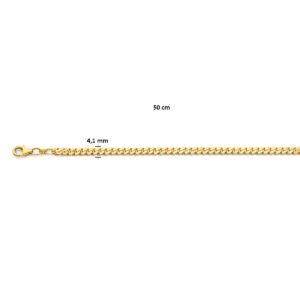 14k Geelgouden lengte-artikel uitgevoerd met een gourmette schakel van 4.1mm en een karabijn sluiting.