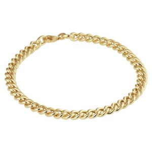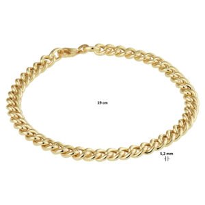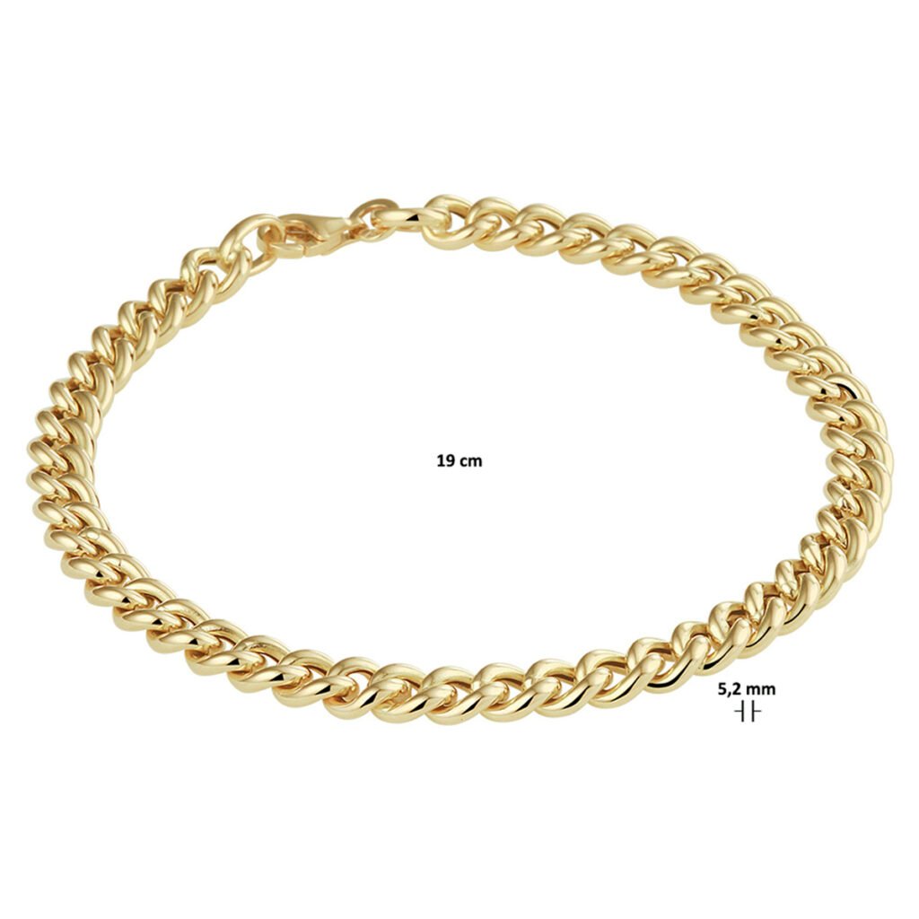 14k Geelgouden gourmet lengte artikel met een schakelbreedte van 5.2mm en een stevige karabijn sluiting.