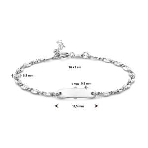 Gerhodineerd 925 zilveren graveerarmband. De armband heeft een draaglengte van 16cm met een extensie van 2cm en een schakelbreedte van 3.5mm. De graveerplaat heeft een dikte van 0.8mm.