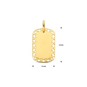 14k Geelgouden graveerhanger met een totale hoogte van 24mm.