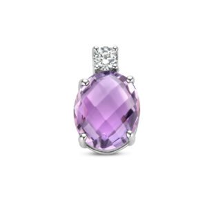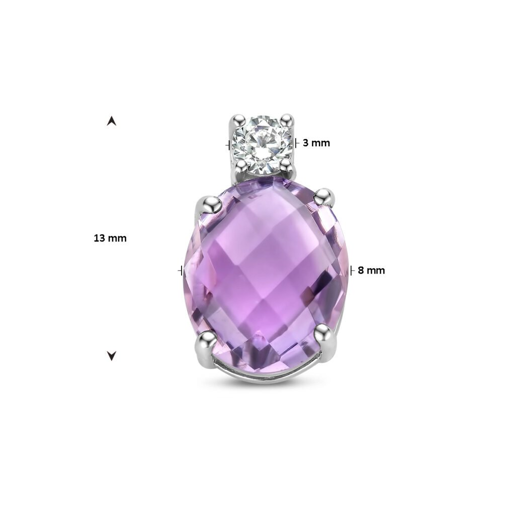 Gerhodineerd 925 zilveren hanger uitgevoerd met amethist en zirkonia. De hanger heeft een totale hoogte van 13mm.