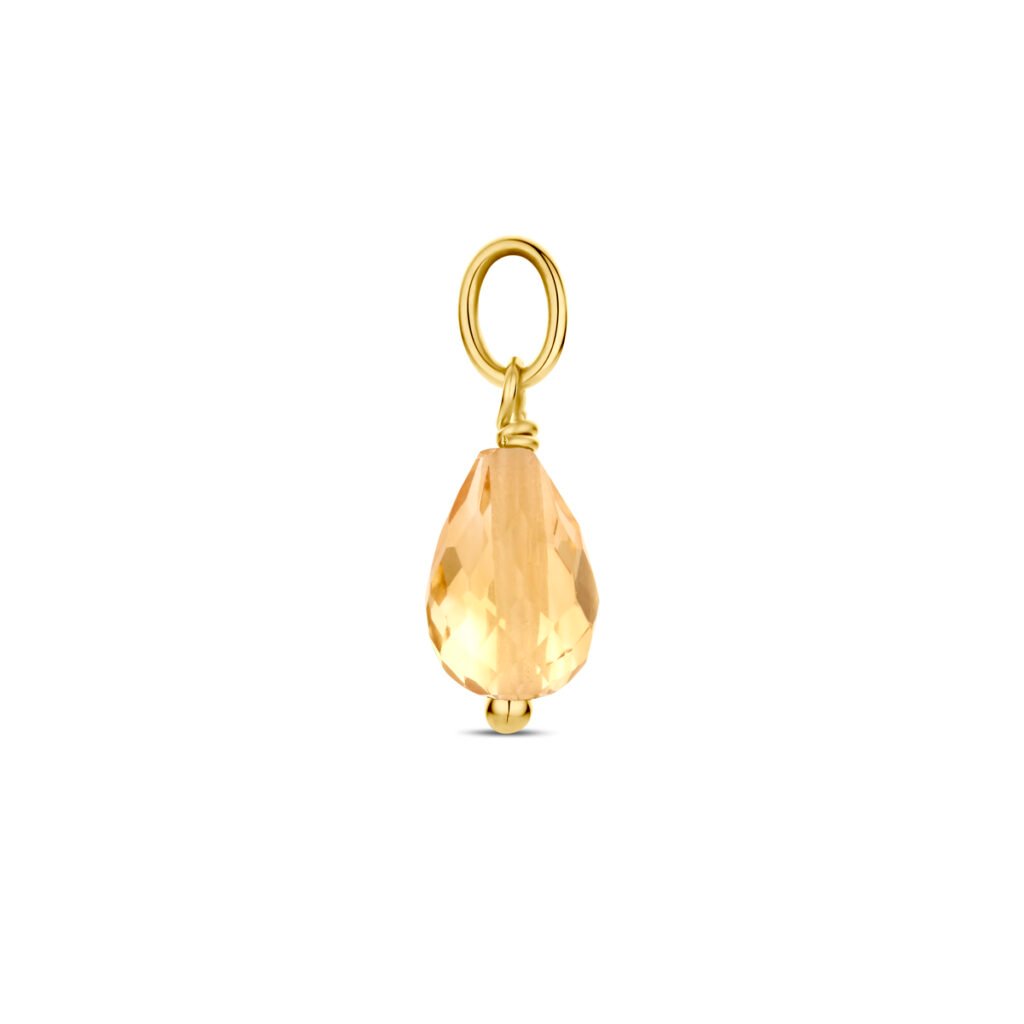 14k Geelgouden hanger uitgevoerd met citrien. De hanger heeft een totale hoogte van 15mm.