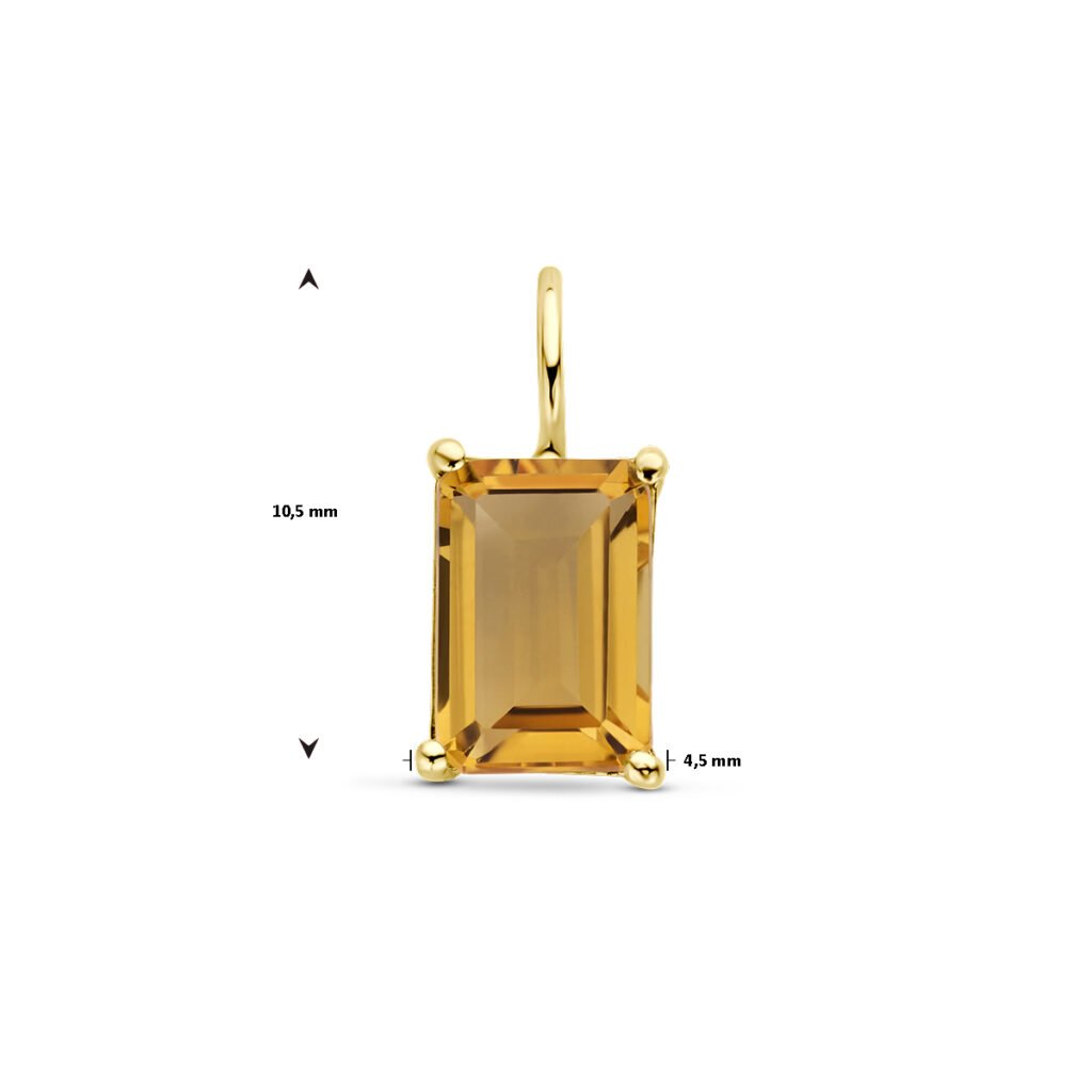 14k Geelgouden hanger uitgevoerd met citrien. De hanger heeft een afmeting van 10.5×4.5mm.
