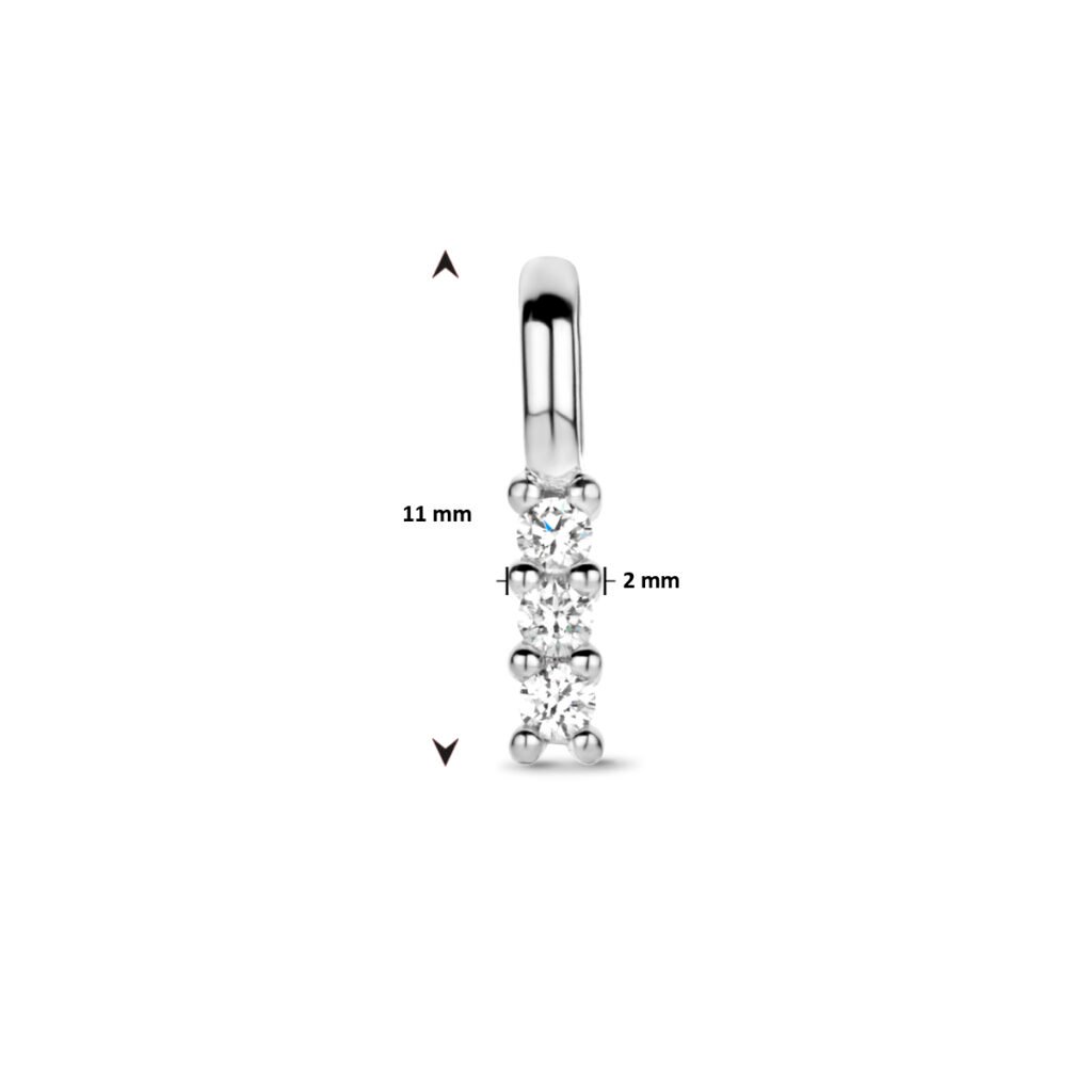 Deze mooie hanger is volledig gemaakt van 14 karaat witgoud, de allerbeste kwaliteit goud, en is voorzien van een fijntjes gepolijst oppervlak dat mooi glanst. Het sieraad bestaat uit een slank oogje, waar u gemakkelijk een ketting doorheen haalt, met daaronder een schitterende diamanten rij die mooi glinstert. Deze hanger kunt u eenvoudig combineren met een mooi collier, waardoor het een bijzonder leuk en luxueus geheel wordt!