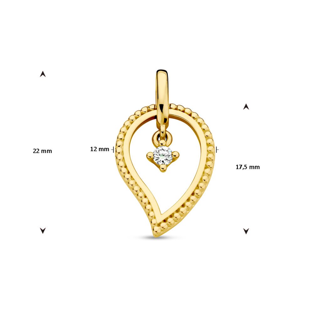 14k Geelgouden hanger uitgevoerd met diamant. De hanger heeft een totale hoogte van 22mm.