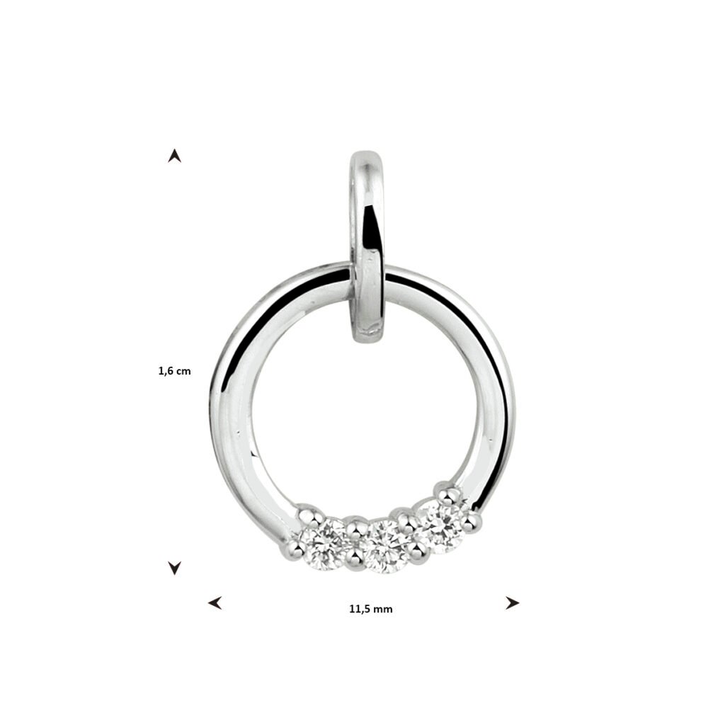 14k Witgouden hanger uitgevoerd met een schitterende diamant rij. De hanger heeft een totale hoogte van 1.6cm en een diameter van 11.5mm.