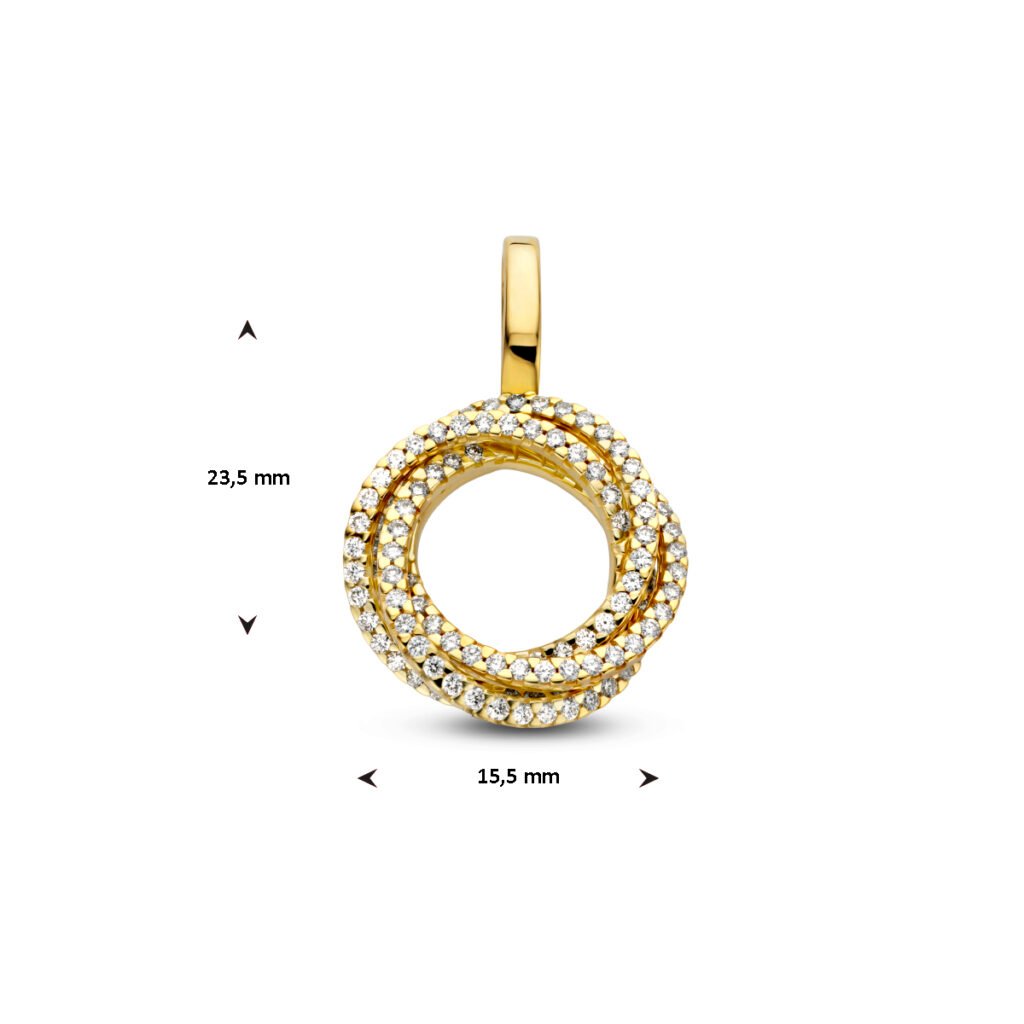 14k Geelgouden hanger uitgevoerd met schitterende diamanten. De hanger heeft een afmeting van 23.5×15.5mm.