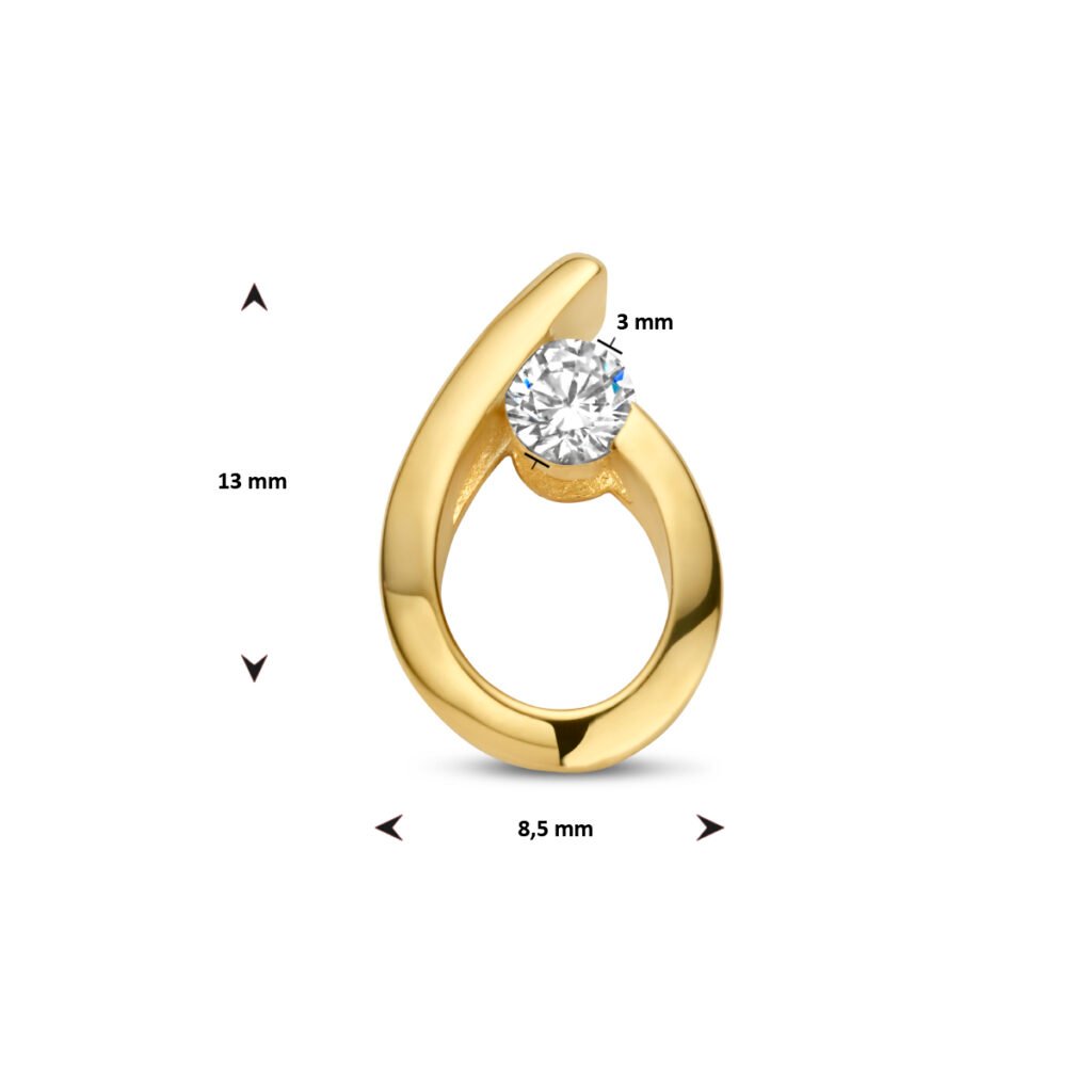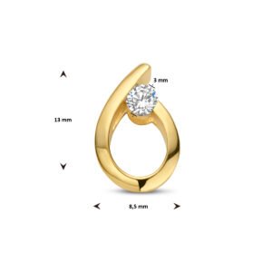 14k Geelgouden hanger uitgevoerd met zirkonia. De hanger heeft afmeting 13×8.5mm.