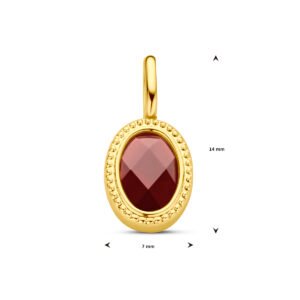 14k Geelgouden hanger uitgevoerd met granaat. De hanger heeft een afmeting van 14.5×7.5mm.