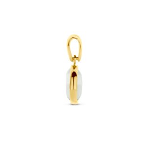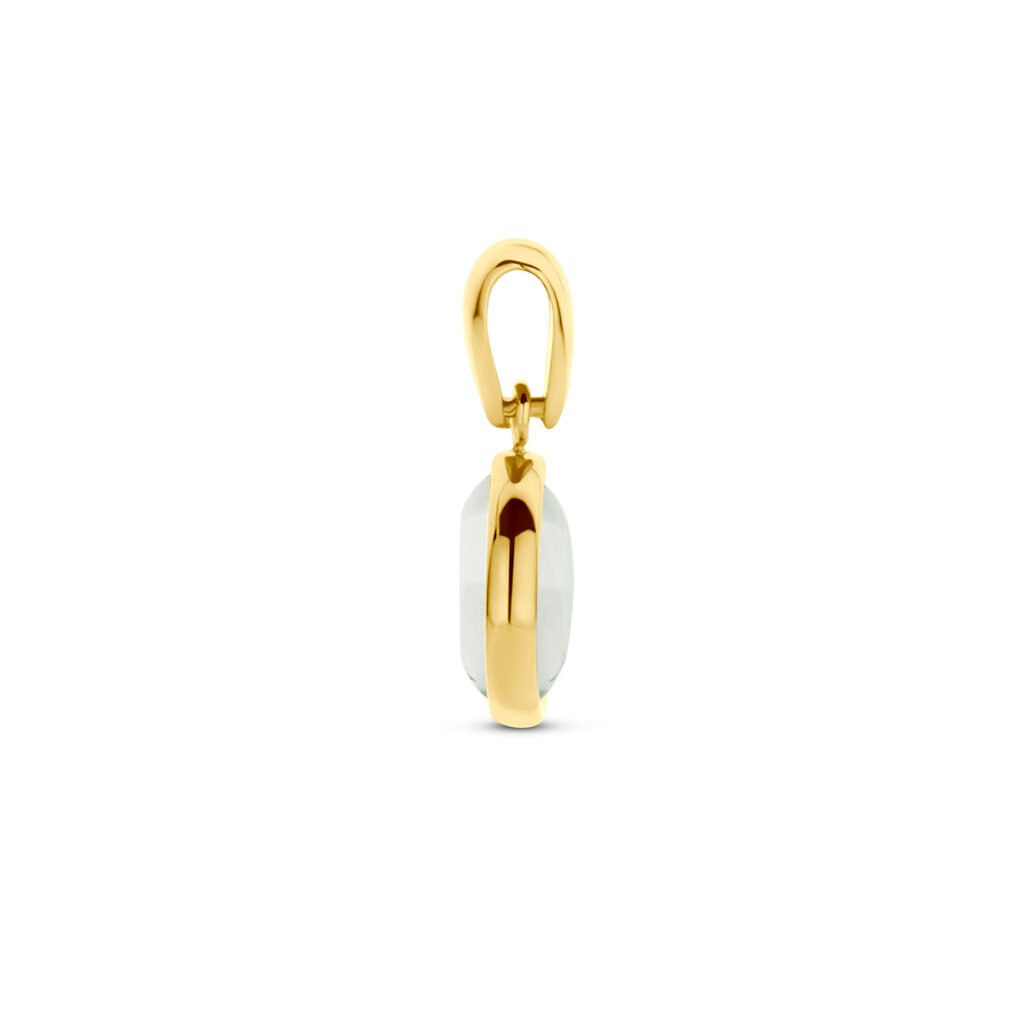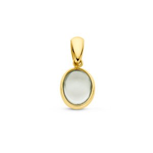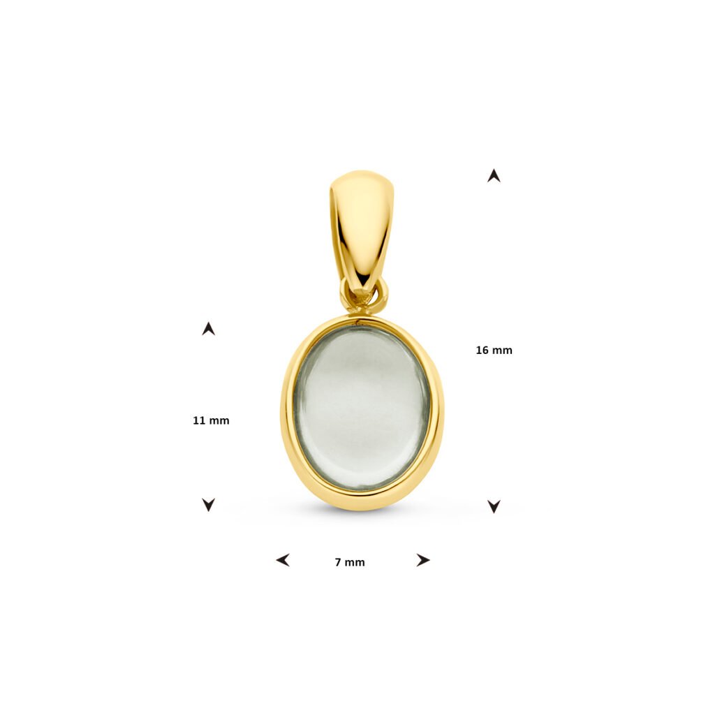 14k Geelgouden hanger uitgevoerd met groen amethist. De hanger heeft een totale hoogte van 16mm.