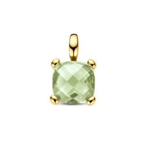 14k Geelgouden hanger uitgevoerd met groen amethist. De hanger heeft een afmeting van 13.5×8.5mm.